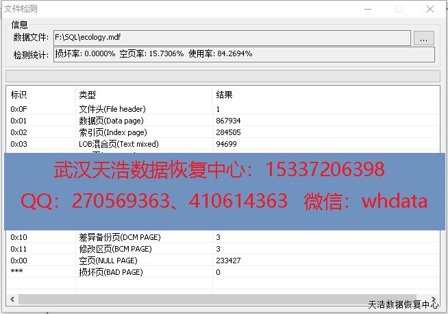 解決方案:客戶聯系我們后,我們遠程大概看了一下底層,確認數據沒有完整加密,然后讓客戶把庫壓縮傳給我們,另外提供一個早期好的備份,使用我們公司自己開發的數據庫修復軟件,成功修復客戶中了勒索病毒的庫!數據庫附加、DBCC檢測,全部ok,然后讓客戶的軟件商遠程看了數據也確認沒有問題!客戶付款后,壓縮數據庫,傳給客戶測試,一切正常!完美修復!