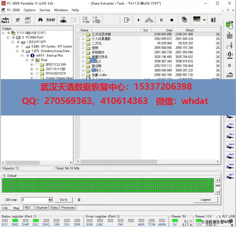 解決方案:收到硬盤后,接到數據恢復工具PC-3000 UDMA Express上通電不認盤,修復固件問題后,硬盤通電正常認盤,DE分頭鏡像,成功恢復客戶硬盤內接近2T的數據。