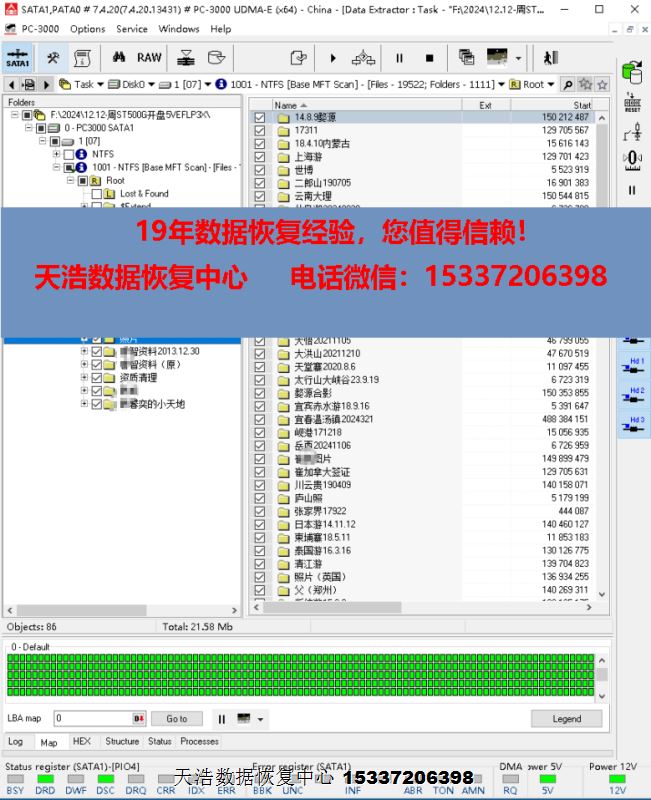 解決方案:收到硬盤后,我們在無塵環境拆開硬盤,更換兼容的磁頭,再接到數據恢復工具PC-3000 UDMA Express上,通電硬盤正常認盤,備份好固件,做好恢復前的準備工作后,DE分頭鏡像,成功完美恢復出客戶硬盤里面的重要數據,包含客戶多年來各地旅游的照片和視頻數據!