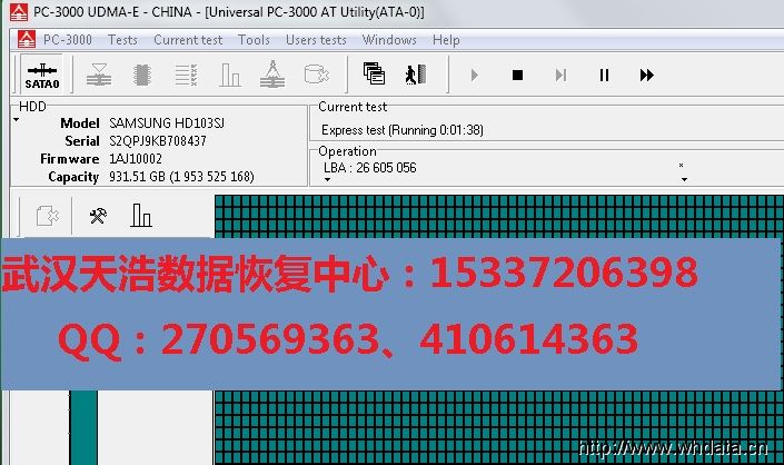 接到數據恢復工具PC-3000 UDMA Express上,處理固件,再斷電通電硬盤認盤,掃描正常。然后發回給同行自己做鏡像。