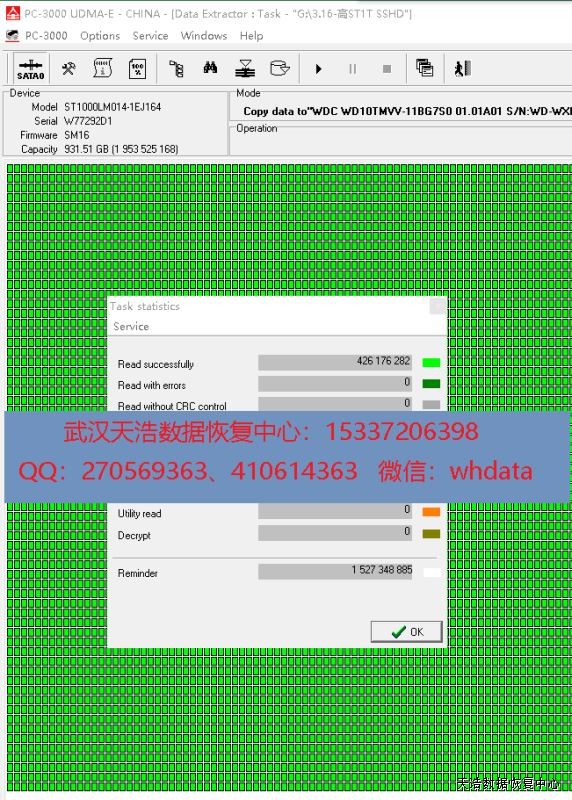 通過固件分析、處理,最后硬盤正常認盤,DE鏡像,成功恢復客戶的工作數據!